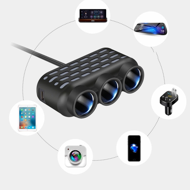 1 To 3 12V/24V Car Cigarette Lighter Charger Multi-function Seven-color Light, BY-1507