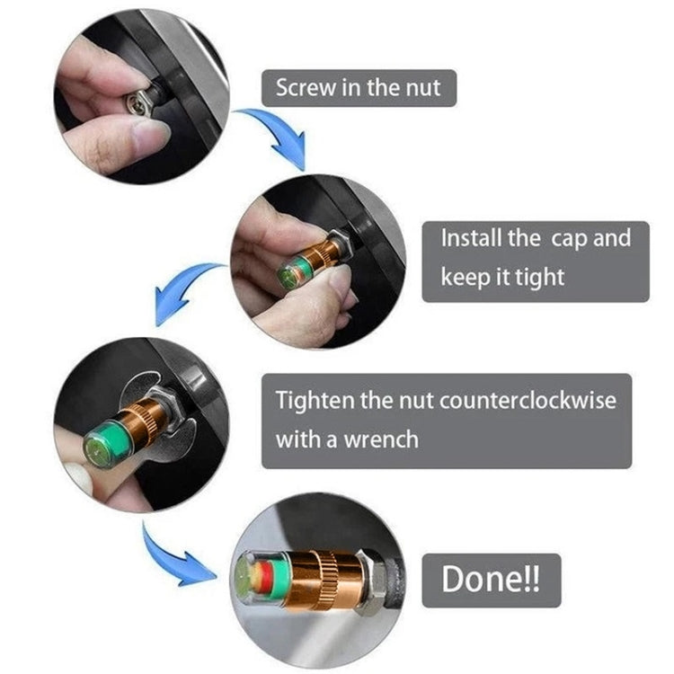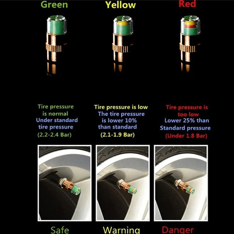 2.4BAR Vehicle Tire Pressure Monitoring Warning Cap, Brass Core, Anti-theft with Wrench