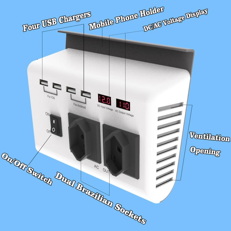 4-USB Dual-Socket Inverter Socket Car Digital Display Power Conversion Outlet, EU Plug 12V To 220V, US Plug 12V To 110V, Brazil Plug 12V To 110V, Brazil Plug 12V To 220V