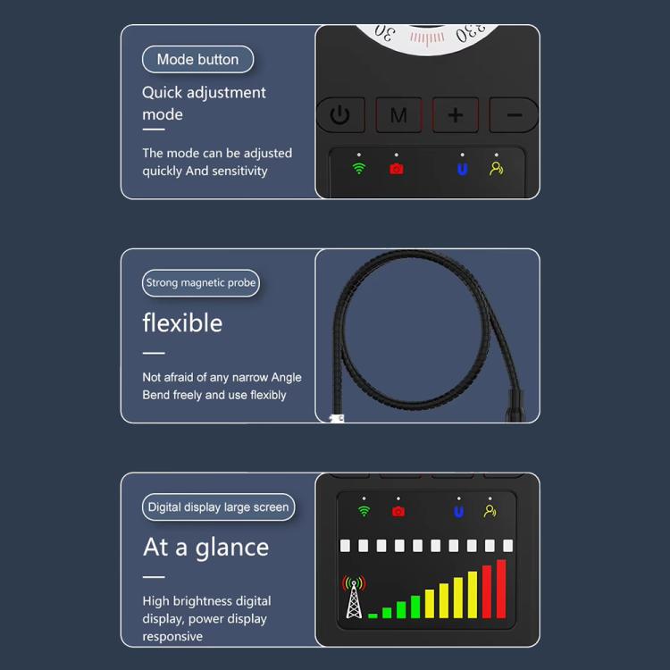 3. Upgraded high-sensitivity chip, 1MHZ6GHZ broadband can detect all locators/monitors/listeners/trackers, etc. and can accurately find the source of wireless transmission