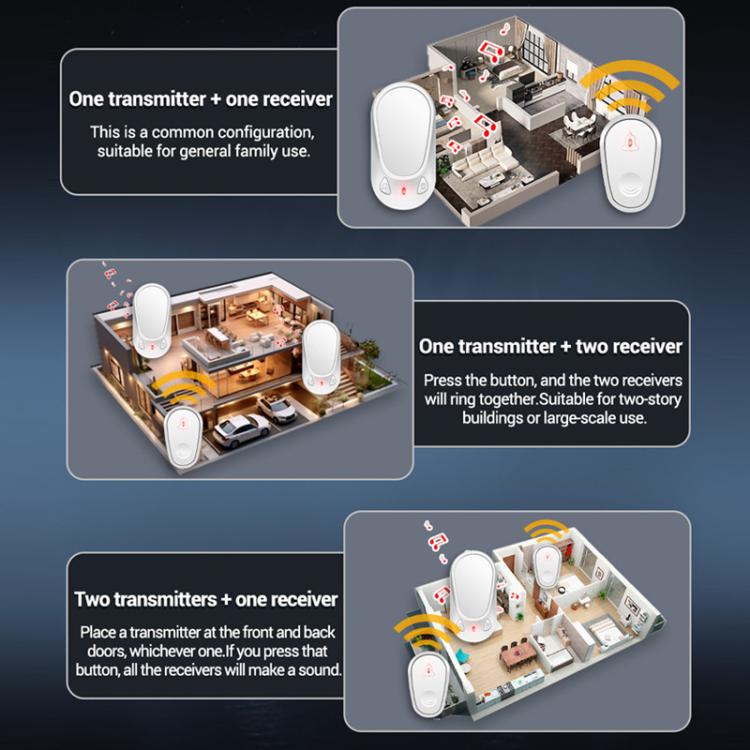 ANENG Home Intelligent Electronic Remote Control Waterproof Wireless Doorbell, One Press One Ring, One Press Two Rings, Two Presses One Ring