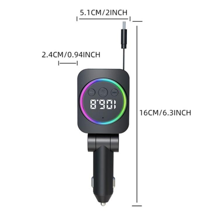 C76 Retractable Cable PD 30W Car Charger Cigarette Lighter Adapter Bluetooth FM Transmitter, C76