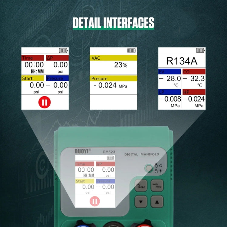 DUOYI DY523 Automotive Vacuum Pressure Gauge Liquid Charge Fluorine Repair Electronic Refrigerant Meter, 2pcs / Set, 11pcs / Set
