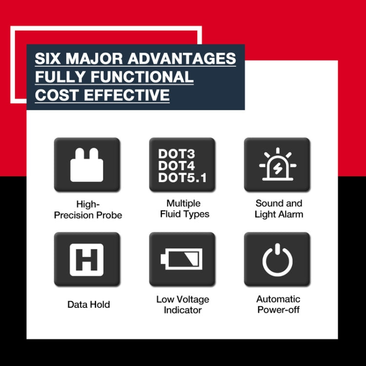 1. Instructions for use: brake fluid moisture tester pen by detecting changes in conductivity to measure the water content in the brake fluid, high water content will reduce the boiling point, affecting brake performance