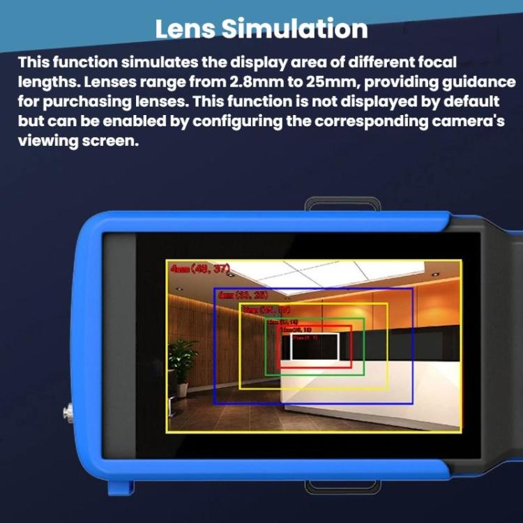 2. Lens simulation, which can simulate the display area of different focal lengths. The lenses can be classified as 2.8 - 25mm lenses, which are used to guide the selection of lenses. By default, it is not displayed, and it can be configured to be opened in the corresponding camera to view the video