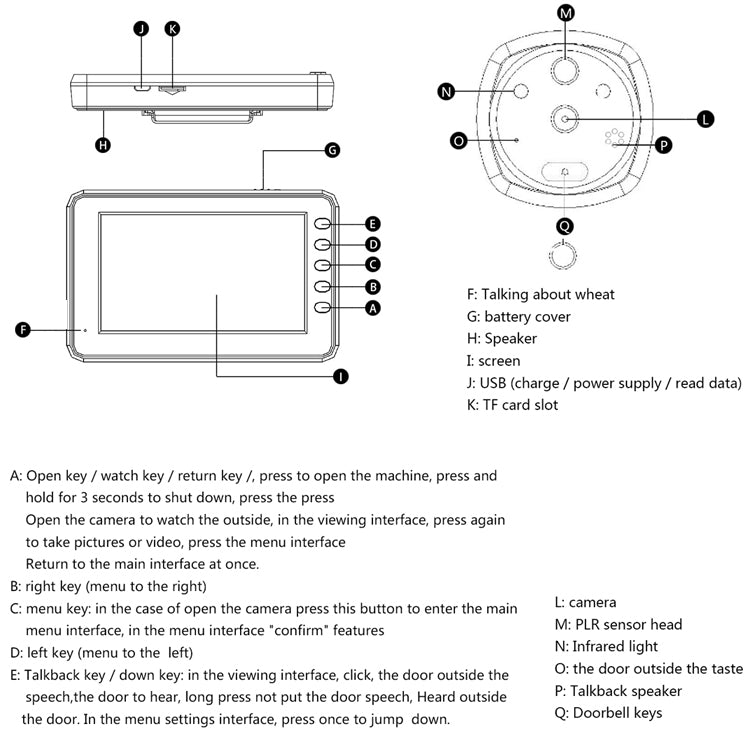 M4300A 4.3 inch Display Screen 3.0MP Camera Video Smart Doorbell, Support TF Card (32GB Max) & Motion Detection & Infrared Night Vision, M4300A