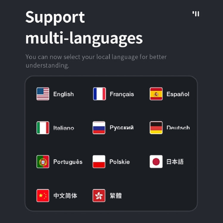6. Support multiple languages: English, French, Russian, German, Italian, Polish, Spanish, Portuguese, Simplified Chinese, Traditional Chinese (languages can also be customized according to customers)