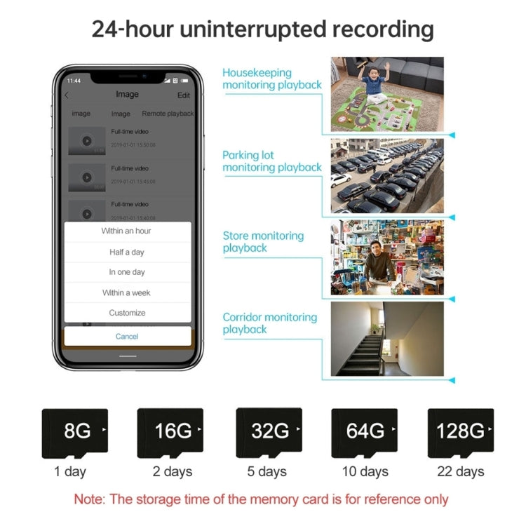 5. Local storage: TF card (support up to 128GB, not included)