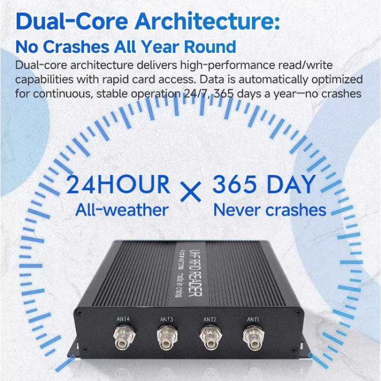 RFID 4-Channel UHF Long-Range Reader with Antenna, Industrial Access Control & Warehouse Management RFID Reader / Writer, Reader with Antenna