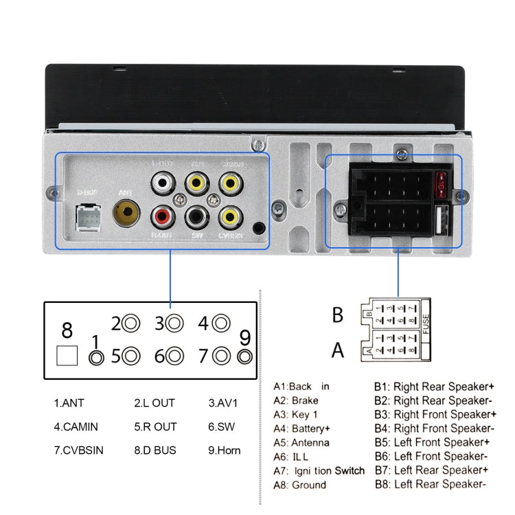 11. Rear view camera input function: if connected to the car reverse camera, the car stereo monitor will automatically switch to the rear view reversing details