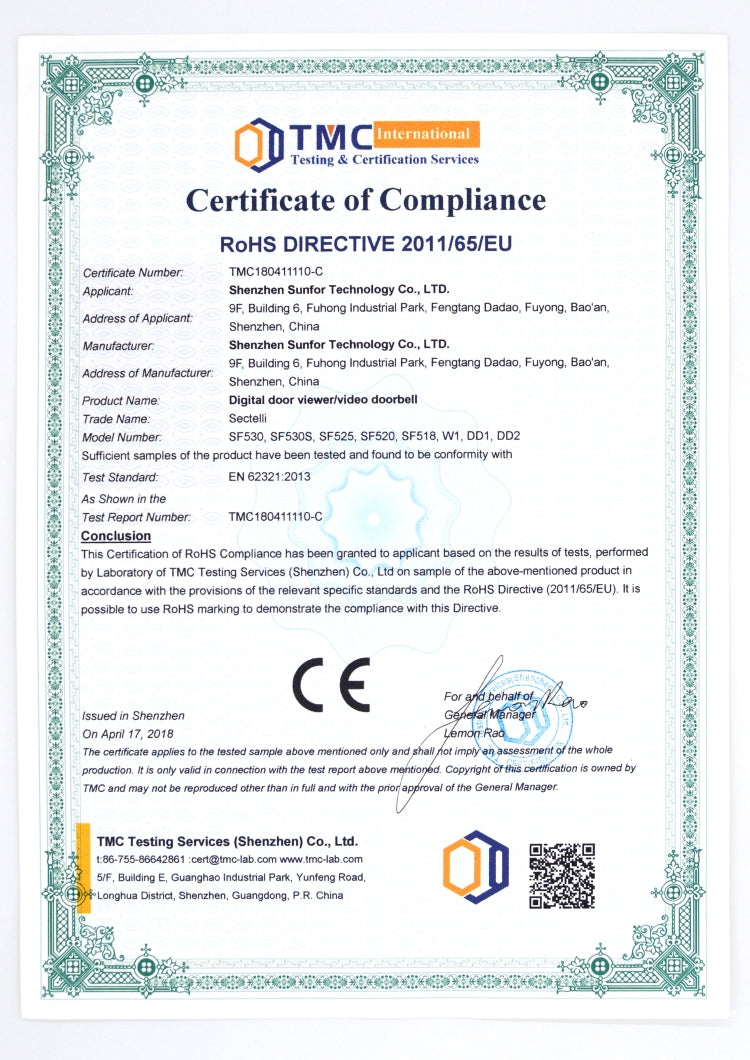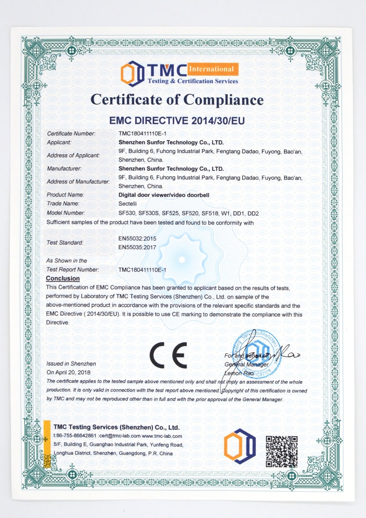 SN520A 3.5 inch Screen 1.0MP Security Camera Digital Peephole Door Viewer, SN520A