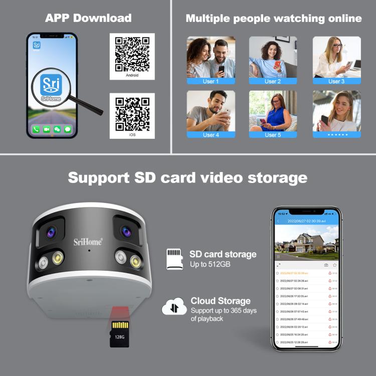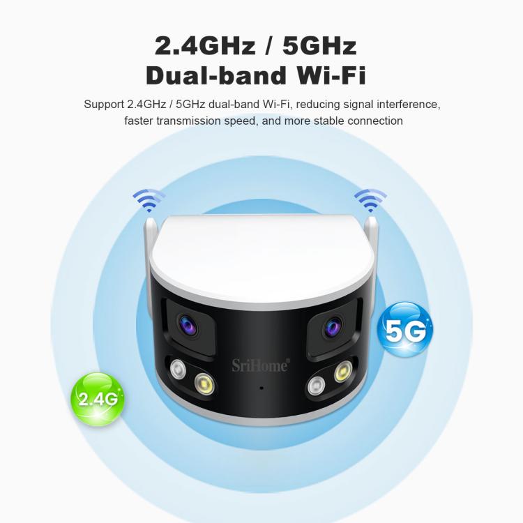 SriHome SH070 4MP Binocular Stitching Ultra-wide Angle Waterproof Camera Supports Full-color Night Vision, AU Plug, UK Plug, EU Plug, US Plug