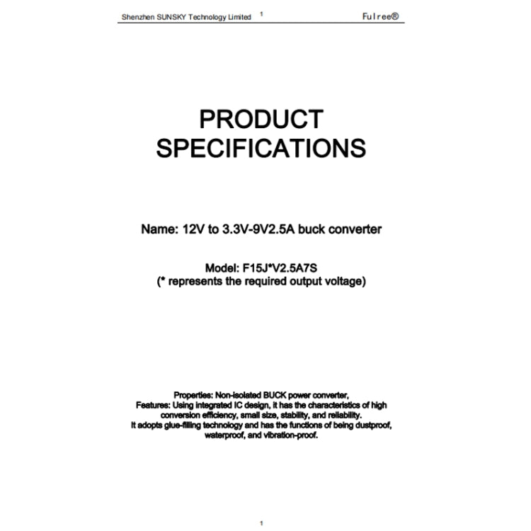 Vehicle Power Supply DC Ultra Thin Step-Down Power Converter, Fulree 12V To 3.3V 2.5A, Fulree 12V To 4.2V 2.5A, Fulree 12V To 5V 2.5A, Fulree 12V To 6V 2.5A, Fulree 12V To 7.5V 2.5A, Fulree 12V To 9V 1A