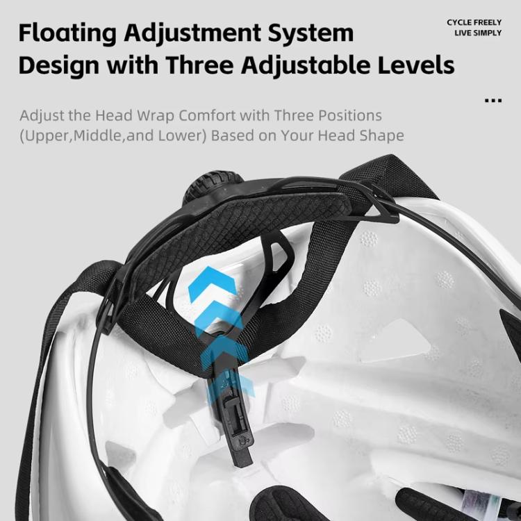 4. Floating adjustment system with three settings: top, middle, and bottom. Customizable to head shape for optimal comfort