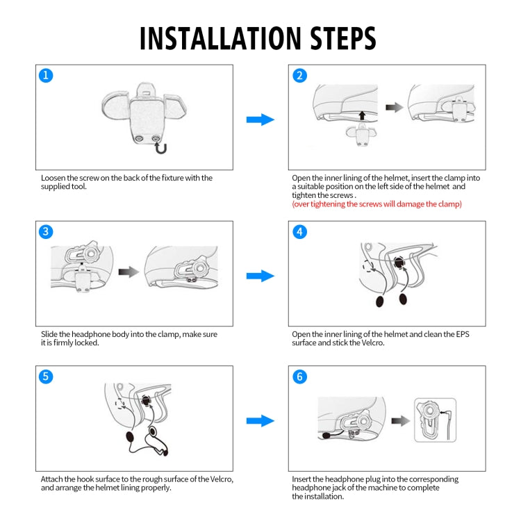 16. The product is equipped with soft and hard two-in-one earphones, hook and loop fastener bottom clips, front and rear bottom clips, suitable for any kind of motorcycle helmets