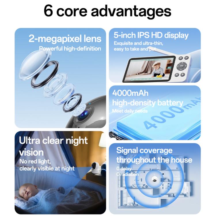 Yesido KM28 5 inch LCD Screen 2.4G WiFi Baby Monitor Care Camera, Plug: UK Plug, KM28
